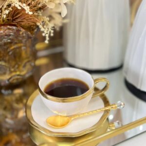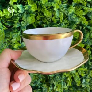 Surpreenda os seus convidados com esta elegante linha Dubai feito de porcelana na cor branca e detalhes em dourado. De linhas clássicas e design requintado, este jogo dará um toque e sofisticação à sua mesa.