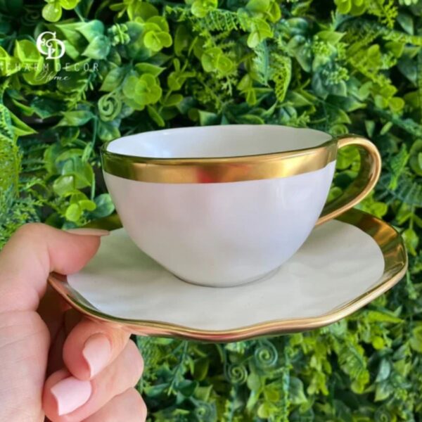 Aparelho de Jantar e Chá 30pçs Porcelana Branca e Dourada Dubai Wolff