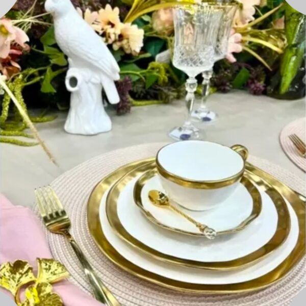 Tenha em sua casa este belo Aparelho de Jantar e Chá em Porcelana da Linha Dubai da Wolff Branco/Dourado , sinônimo de bom gosto, sofisticação e elegância.