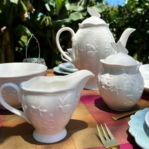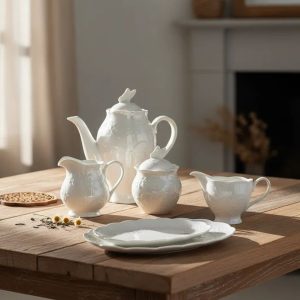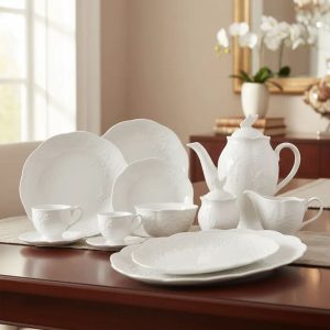Servir com Estilo: As travessas de tamanhos variados são perfeitas para servir pratos maiores, como carnes, saladas ou massas, enquanto as peças adicionais como o molheiro e o açucareiro garantem que sua mesa esteja sempre bem equipada e organizada, sem perder o charme.