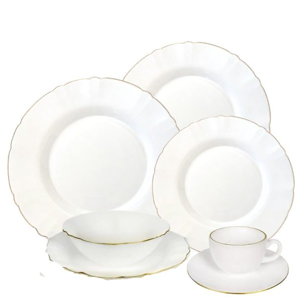 Aparelho Jantar e Chá 36pç Opalino Lidia Fio de Ouro p/ 6pessoas Hauskraft