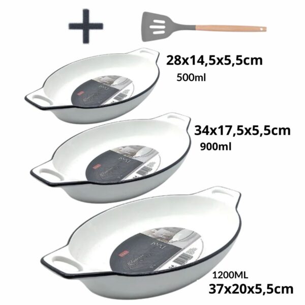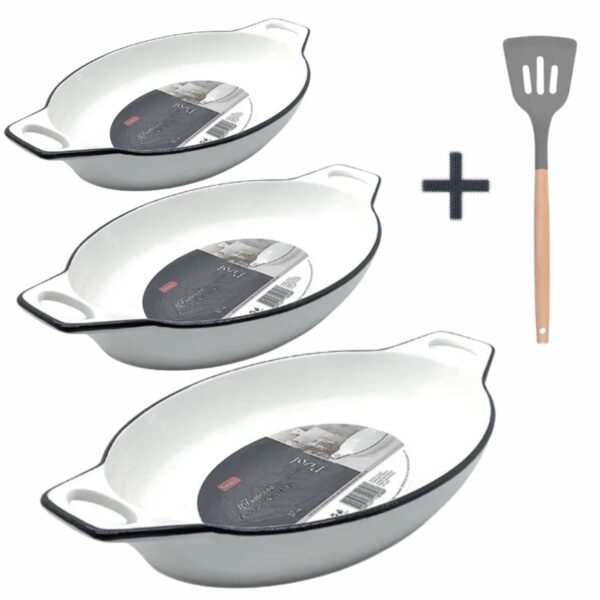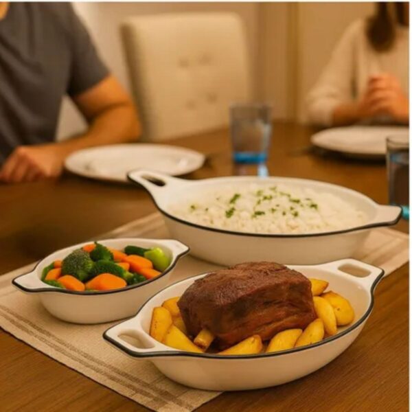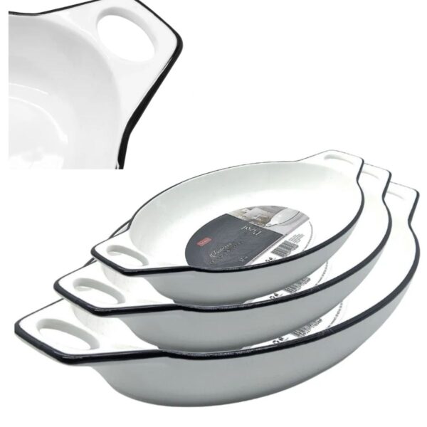Assadeira Travessa Oval 3un c/Alça Branca e Fio Preto Forno Pizol