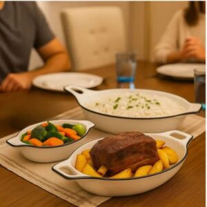 O conjunto de Assadeira Portuguesa é uma excelente escolha para preparar pratos e servir com elegância adicionando charme e estilo a sua mesa.