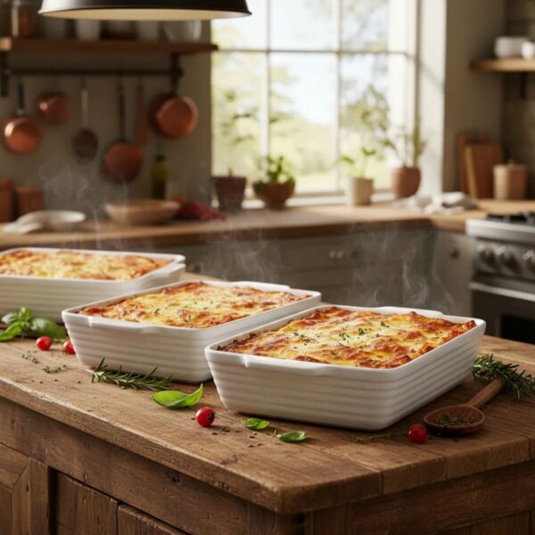 Assadeira, Travessa Refrataria Porcelana Branca 3un Linea Lyor