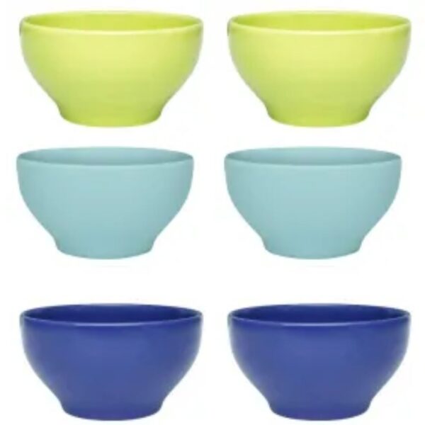 Conjunto com 6 bowls nas cores: 2 Verde Claro, 2 Azul Claro e 2 Azul Escuro.