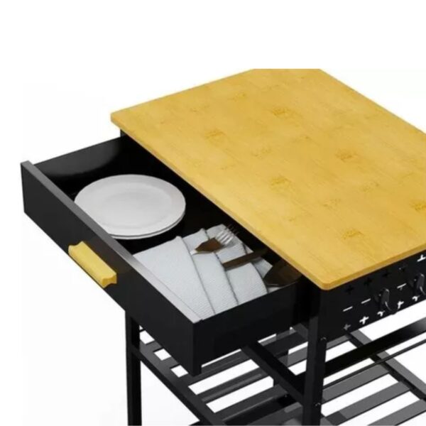 Carrinho Multifuncional Cozinha Churrasco Metal e Bambu