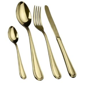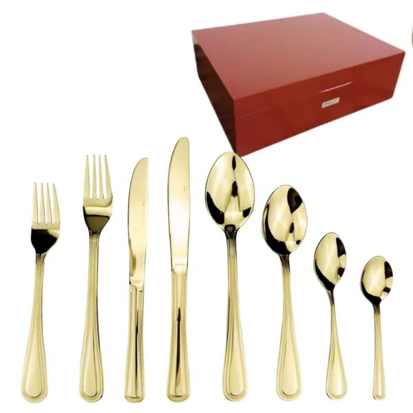 Faqueiro Pearls Aço Inox Dourado com Estojo Madeira 101pç Fracalanza