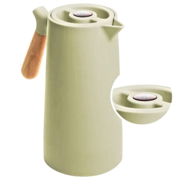 Garrafa Térmica Para Café Chá 1lt Menta Cabo de Madeira e Termômetro
