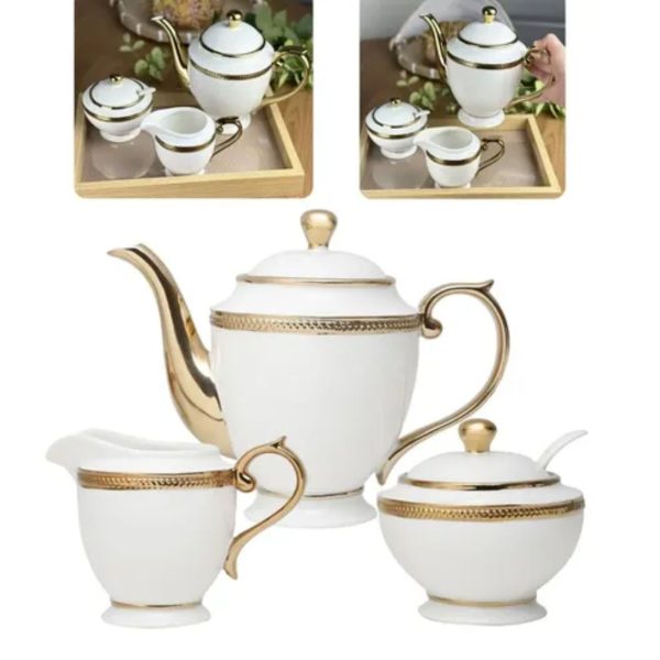 Jogo para Chá de Porcelana Paddy 3 Peças Wolff com detalhes em dourado oferece sofisticação, elegância e ajuda a montar um cenário clássico e lindo na mesa.