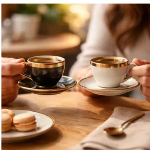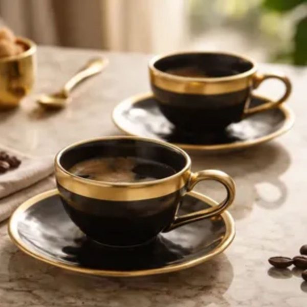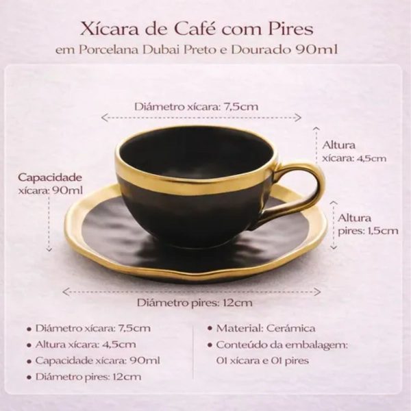 Jogo Xícaras para Café Dubai 90ml c/ Filete Dourado 4un Porcelana Wolff