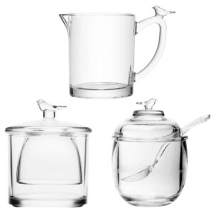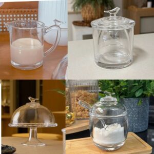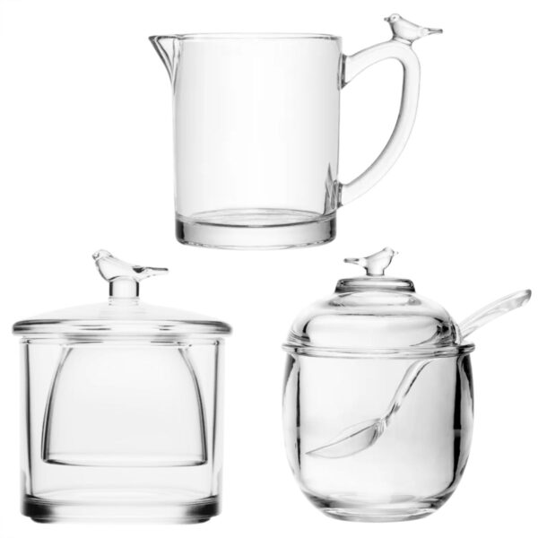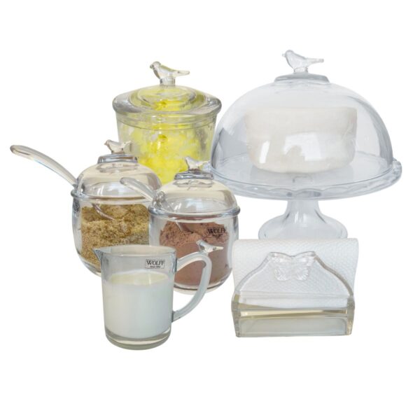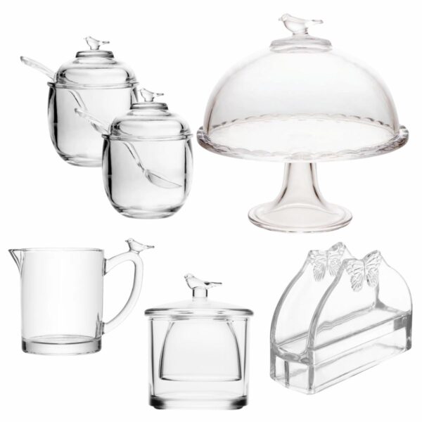 Kit Cafe Manhã Cristal Bird Porta Bolo, Açucareiro, Manteiga 6pç Wolff