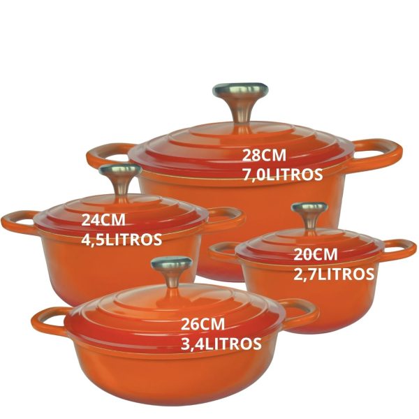Panelas Caçarolas Cerâmica 4peças 4mm Indução Laranja Chef Florença