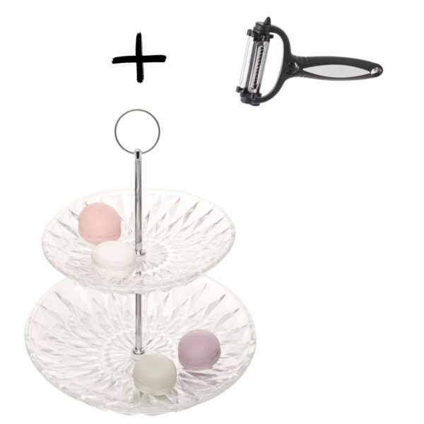 Prato para Bolo e Doces Cristal Diamond 2 Andares 24,5 e 19,5cm Lyor