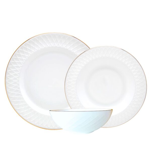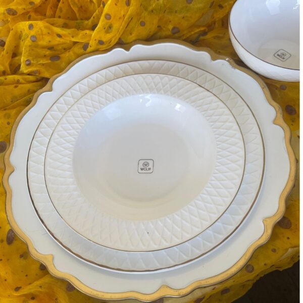 Prato Raso, Fundo e Bowl Opalino Fio de Ouro 18un Royale Wolff
