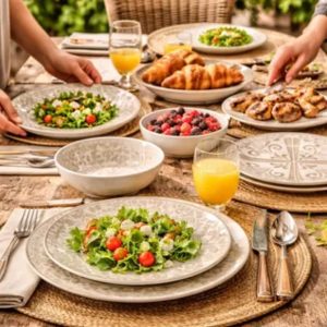 Adicione um toque de classe e praticidade à sua experiência gastronômica com os Pratos de Melamina Floral Bege da Florarte. A melhor experiência em receber, servir e decorar!