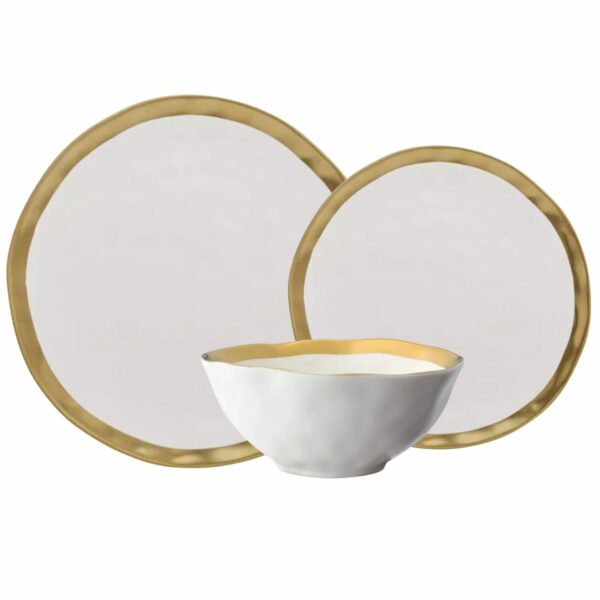 Prato Raso, Sobremesa e Bowl Porcelana Branca e Dourado Dubai 18pç Wolff