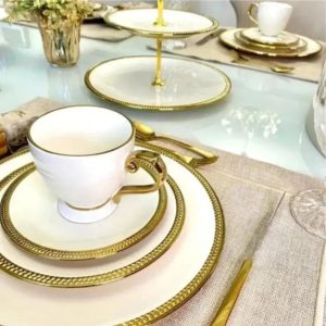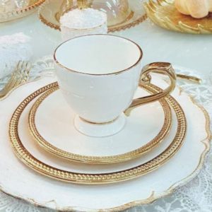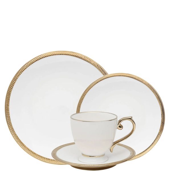 Prato Raso, Sobremesa e Xícara Chá Paddy Porcelana Fio de Ouro Wolff