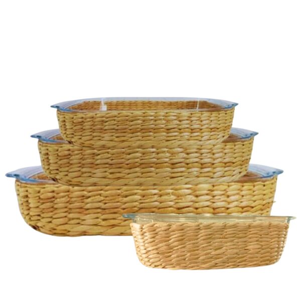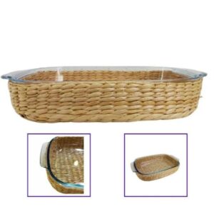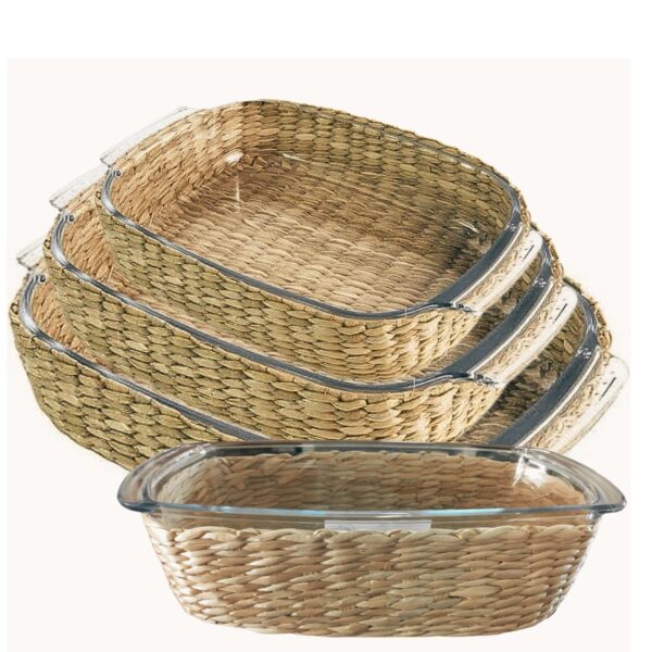 Travessa e Assadeira Refratárias 4un Vidro com Suporte de Rattan