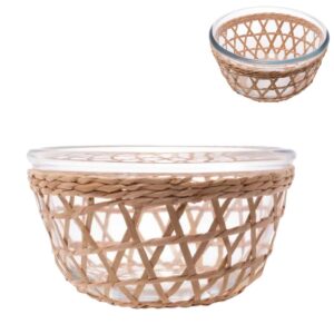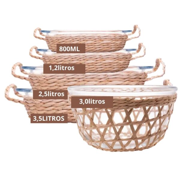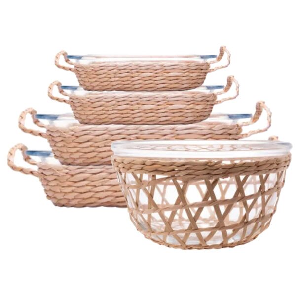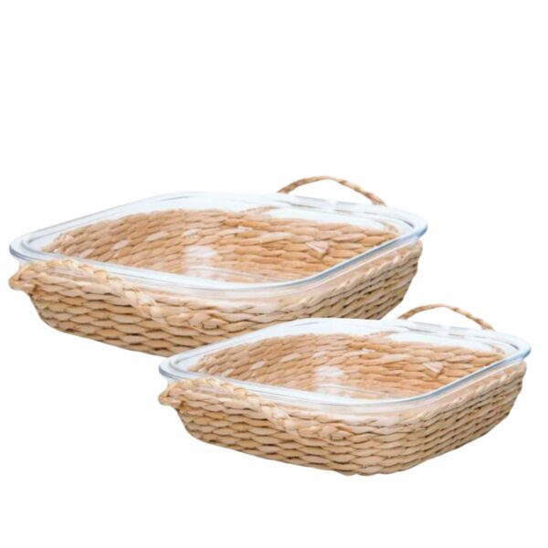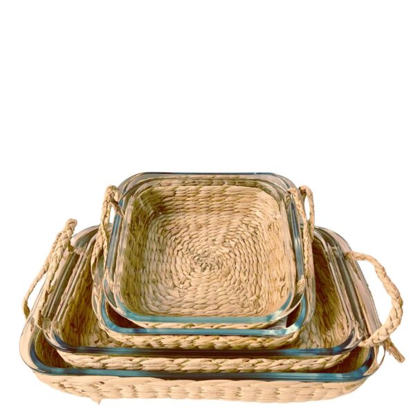 Travessa e Assadeira Refratárias 5un Vidro com Suporte de Rattan Wolff