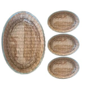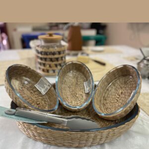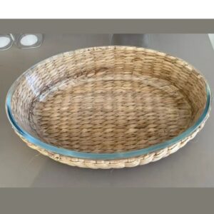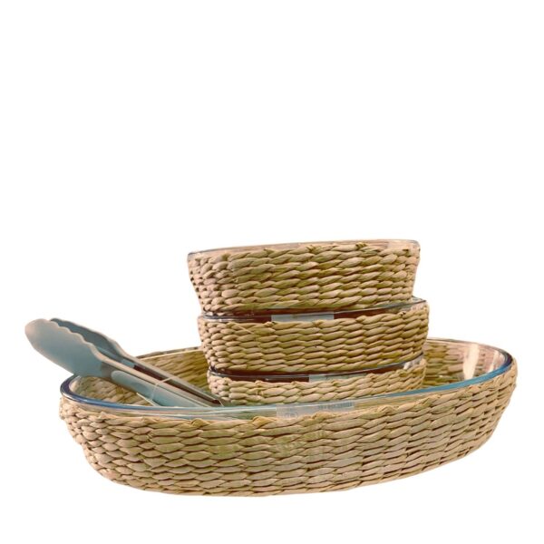 Travessa e Assadeira Refratárias 5un Vidro Oval com Suporte de Rattan