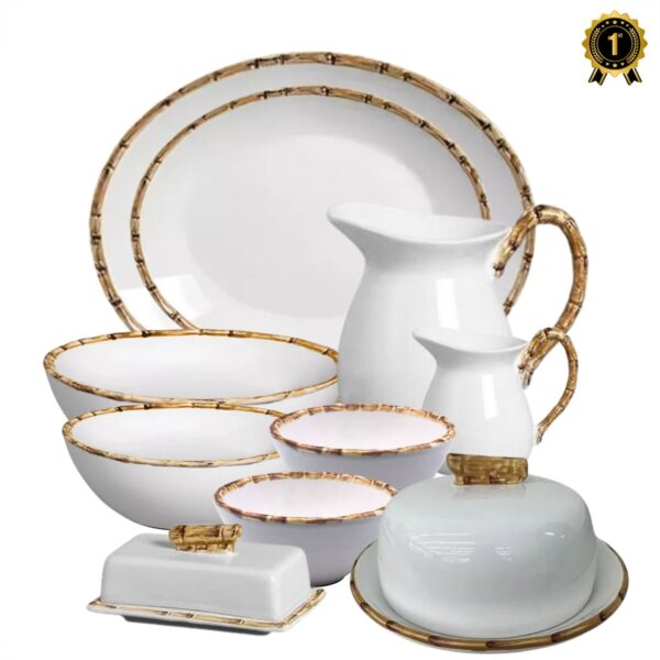 Baixela para Servir Linha Bambu 10pç Cerâmica Scalla