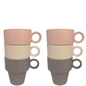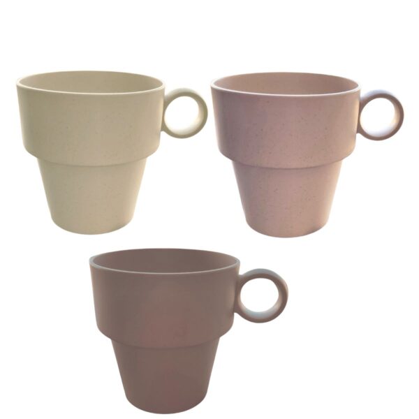 Xícara Chá Empilhável de Fibra Bambu 6un 3 cores 210ml