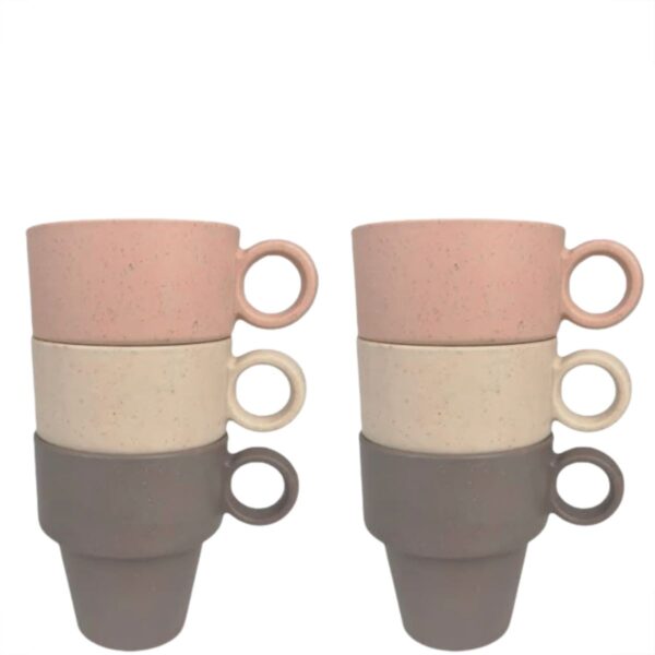 6un Xícara 8x8x8,5 cm e 210ml sendo 2un rosa, 2un bege, 2un marron.