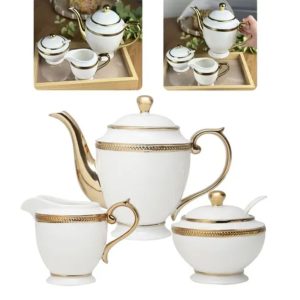 Adorne sua mesa de chá com o requintado Conjunto 3 Peças de Porcelana Paddy Branco da Wolff.