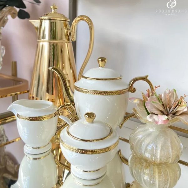 Fabricado em porcelana de alta qualidade, este conjunto é durável e resistente. Sua superfície suave e brilhante adiciona um toque de requinte à sua experiência de chá.