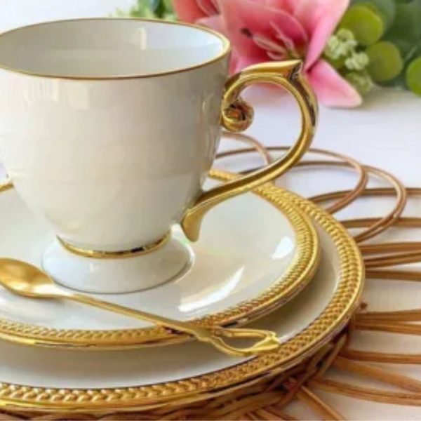 Xícara Chá, Sobremesa, Prato Doces e Chá 16pç Paddy Porcelana Ouro Wolff