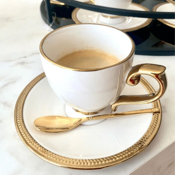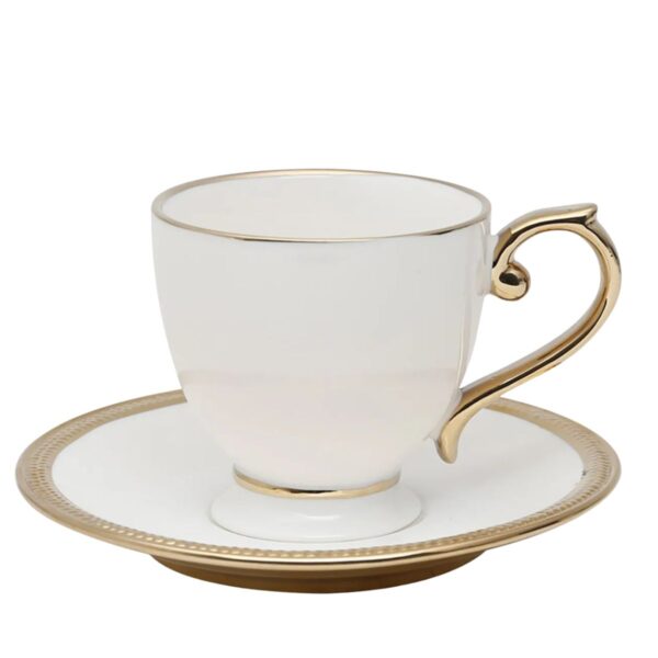 As xícaras e pires em porcelana branca transmitem uma sensação de pureza e beleza atemporal, adicionando um toque de classe à sua mesa.